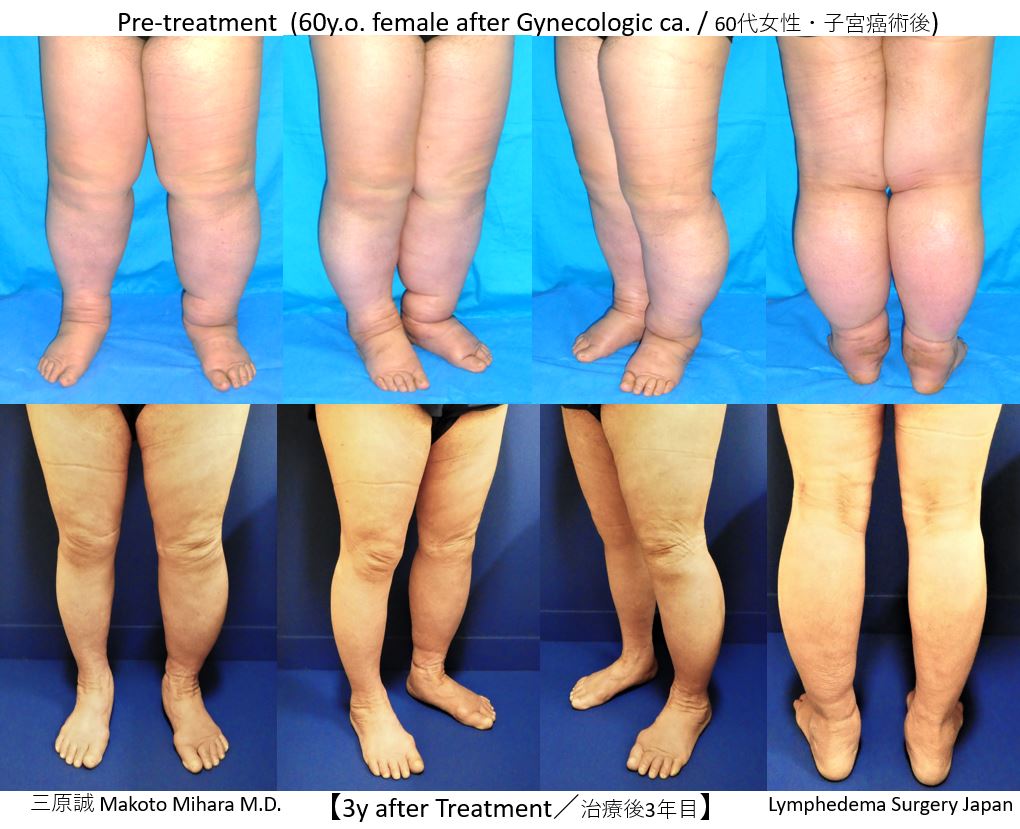 私どもは、リンパ浮腫専門の治療院(ana治療院/川越市)と連携を行っております。下図の患者さんは、保存療法をana治療院にて実施した後に、LVAを実施しました。浮腫の状態は改善しており、本人も生きる意欲が出てきたと喜んでおります。リンパ浮腫の診断がつきましたら、まずは専門の医療機関や、治療施設で保存療法を強化することをお勧めします。ana治療院はこちら。私ども診療チームもとても信頼している治療院です。